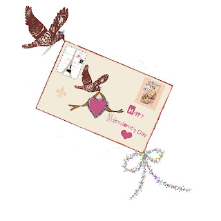 Another inspirational person is Anita from Castles, Crowns and Cottages. She creates these lovely heart sticks and sells them on her etsy shop. Well, Anita's package arrived dressed in pretty tissue paper and with some lovely tags. I was inspired to create a Valentine's arrangement with her embellished heart stick, and I put it next to her Valentine.